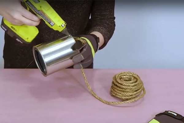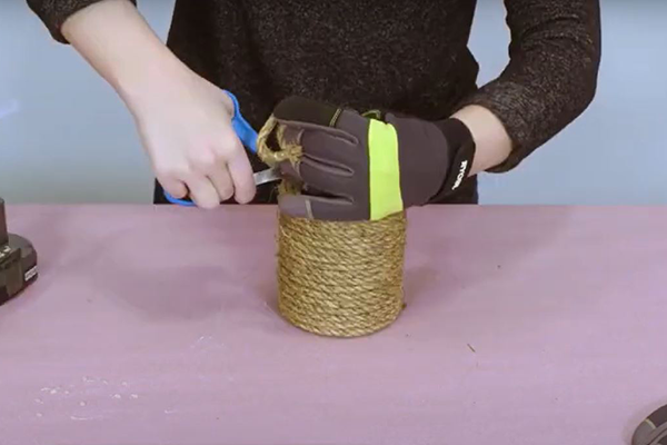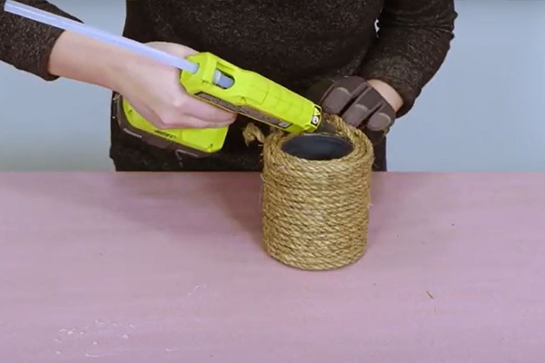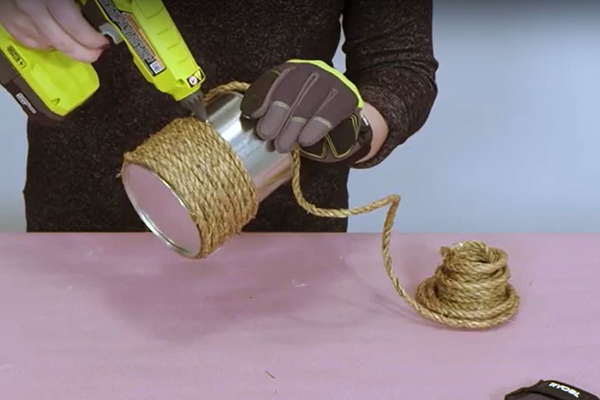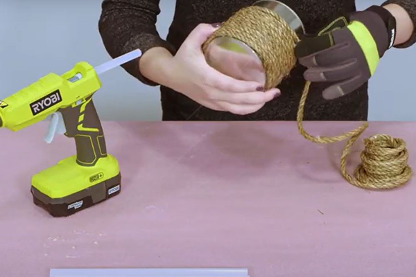 Liimi ja keri nööri ümber purgi servani välja. Kui kogu purk on kaetud, lõika kääridega ülejäänud nöör ära.
